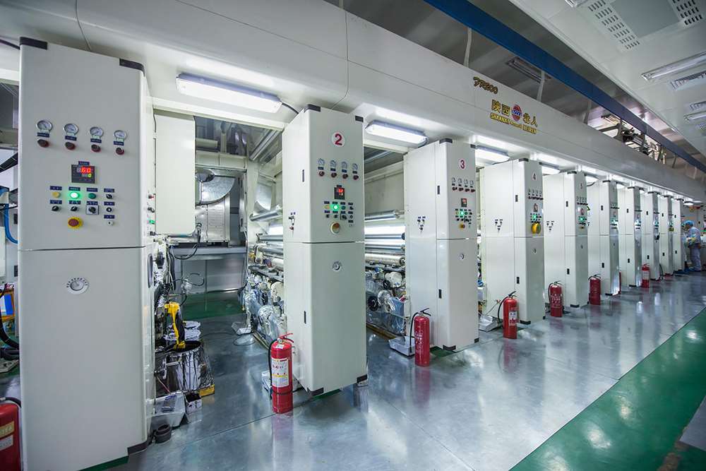 擁有齊全的先進(jìn)的實(shí)驗(yàn)室檢測設(shè)備(如美國安捷倫氣相色譜儀、紅外光譜儀等)、自動化高速單元式印刷機(jī)3臺、鋁箔(PVDC)印刷涂布機(jī)2臺、干式復(fù)合機(jī)2臺、環(huán)保型無溶劑復(fù)合機(jī)3臺、高性能多層共擠上下吹膜機(jī)4臺、流延擠出機(jī)1臺、薄碼噴涂檢品機(jī)5臺,分切機(jī)6臺、制袋機(jī)生產(chǎn)線25臺、鋰電池用鋁塑膜相關(guān)設(shè)備5臺。年設(shè)計(jì)生產(chǎn)能力1萬噸,年產(chǎn)值4.0億元。